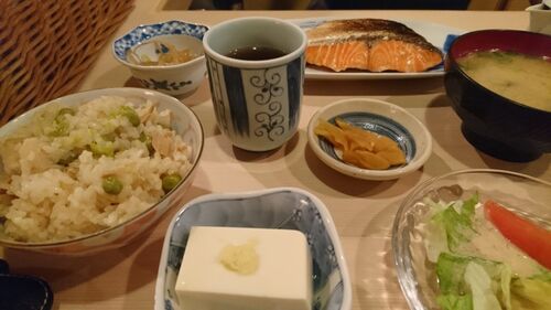 朝食。朝食も美味いのよね。 出張で宇部に出発。 新山口での1両だけでの電車がいた。これには乗らなかったけど。 昼食は適当に見つけたお好み焼き屋のてぼ屋。 ピリ辛麺の肉玉そばを注文。なかなかの美味。麺は細麺。ピリ辛でなくてもよいかも